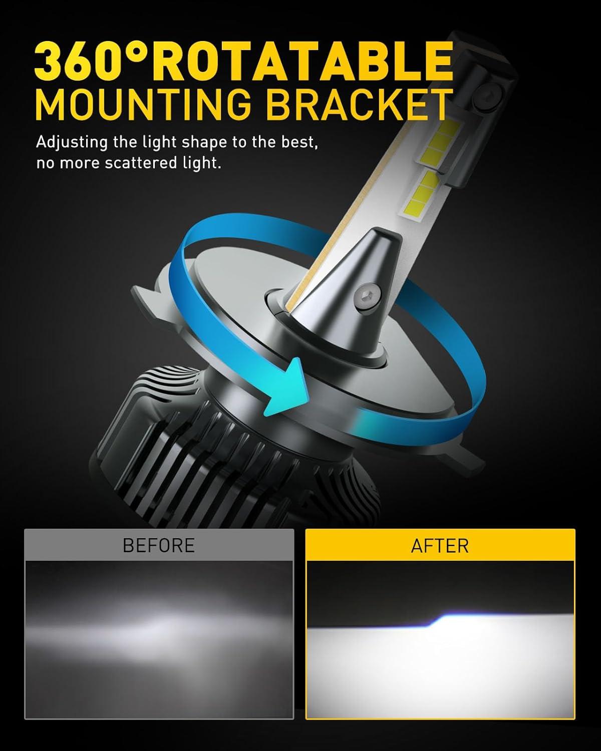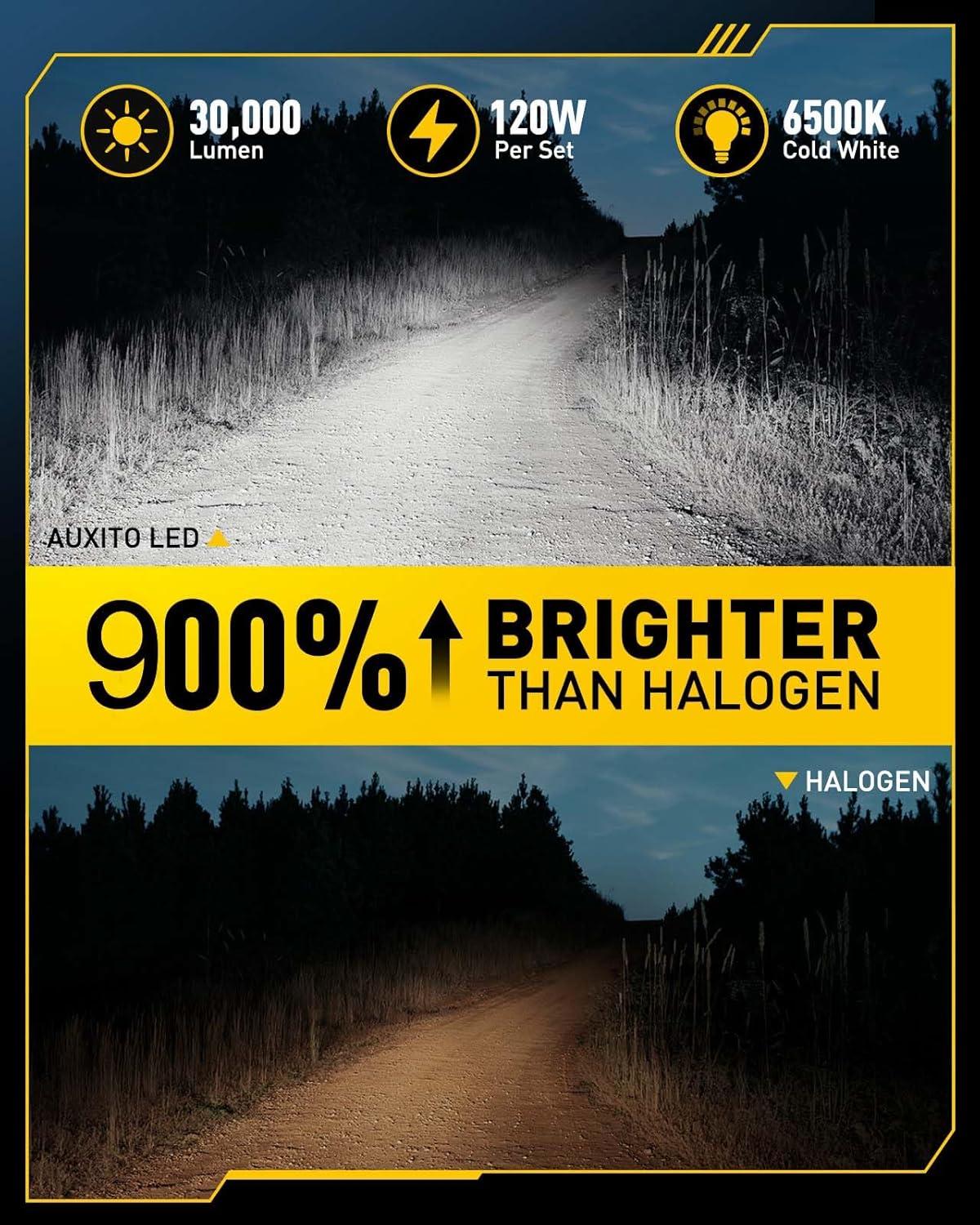 AUXITO H13/9008 LED Bulbs, 900% Brighter 120W 30000LM Per Set, 6500K Cool White H13 LED Bulbs, Plug-N-Play Halogen Replace H13 Bulbs, Canbus Ready, Pack of 2(H4/HB2/9003)