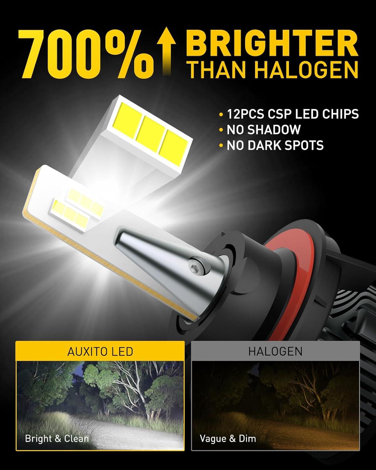 AUXITO H4 9003 HB2 LED Bulbs, 700% Brightness 6500K Cool White, Angle Adjustable Canbus H4 Replacement, Play and Plug, Off-road Use Pack of 2(H11/H9/H8)