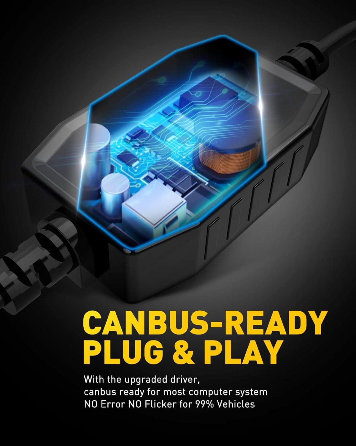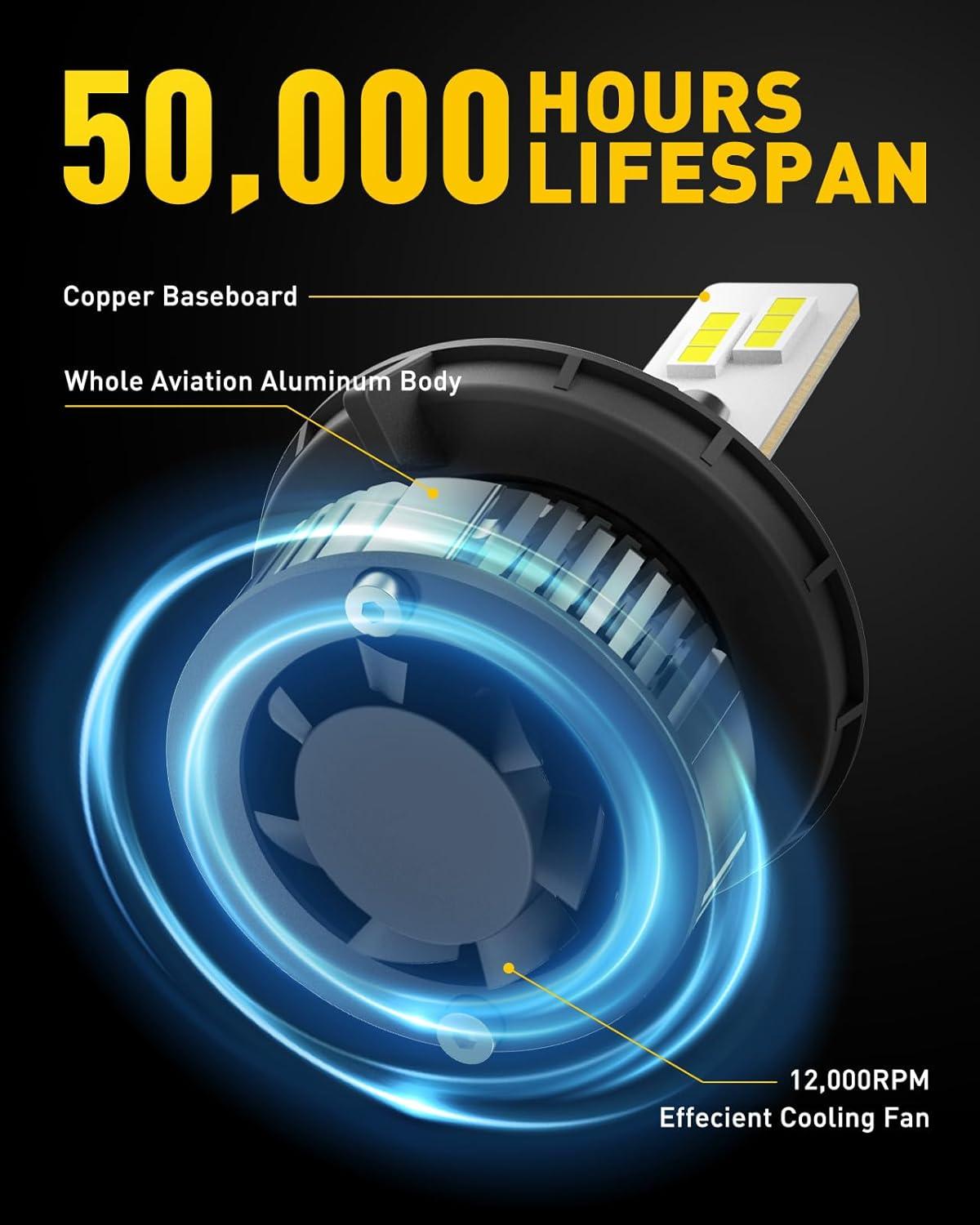 Long Lifespan with Fanless Design: Made with all-aluminum components for optimal heat dissipation, this auxito h4 9003 light is built to last, reducing noise and maintenance with no fans required