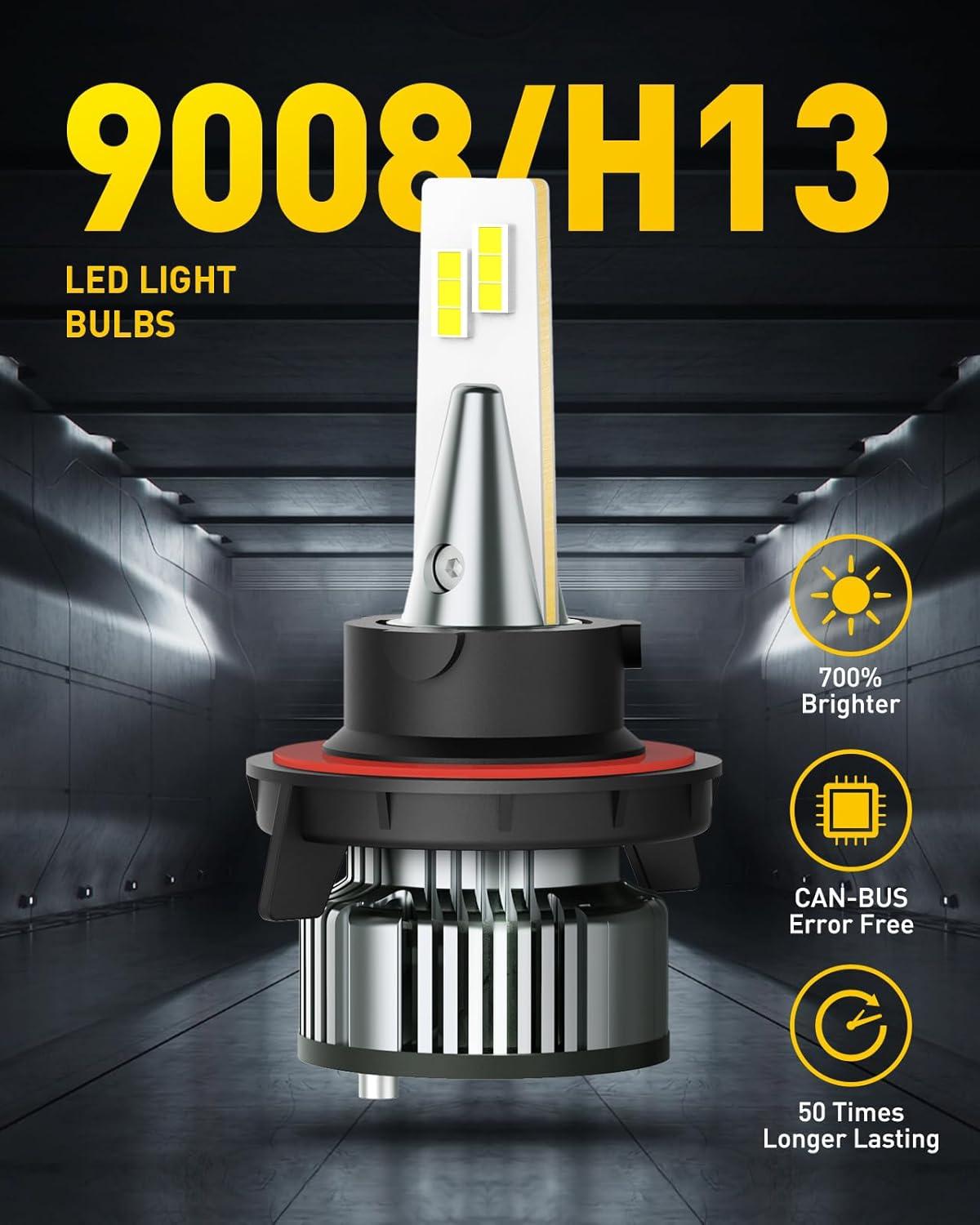 AUXITO H4 9003 HB2 LED Bulbs, 700% Brightness 6500K Cool White, Angle Adjustable Canbus H4 Replacement, Play and Plug, Off-road Use Pack of 2(H13/9008)