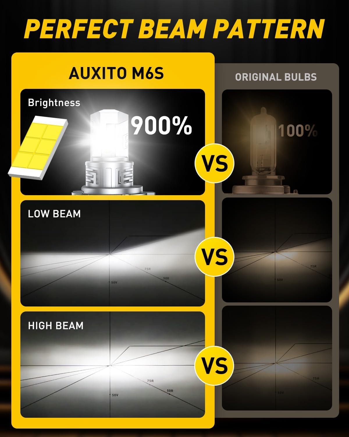 【Revolutionary 900% Brightness Boost】 AUXITO H4 incorporates cutting-edge CSP technology to deliver five times the luminosity of conventional halogen bulbs, transforming your nighttime driving experience