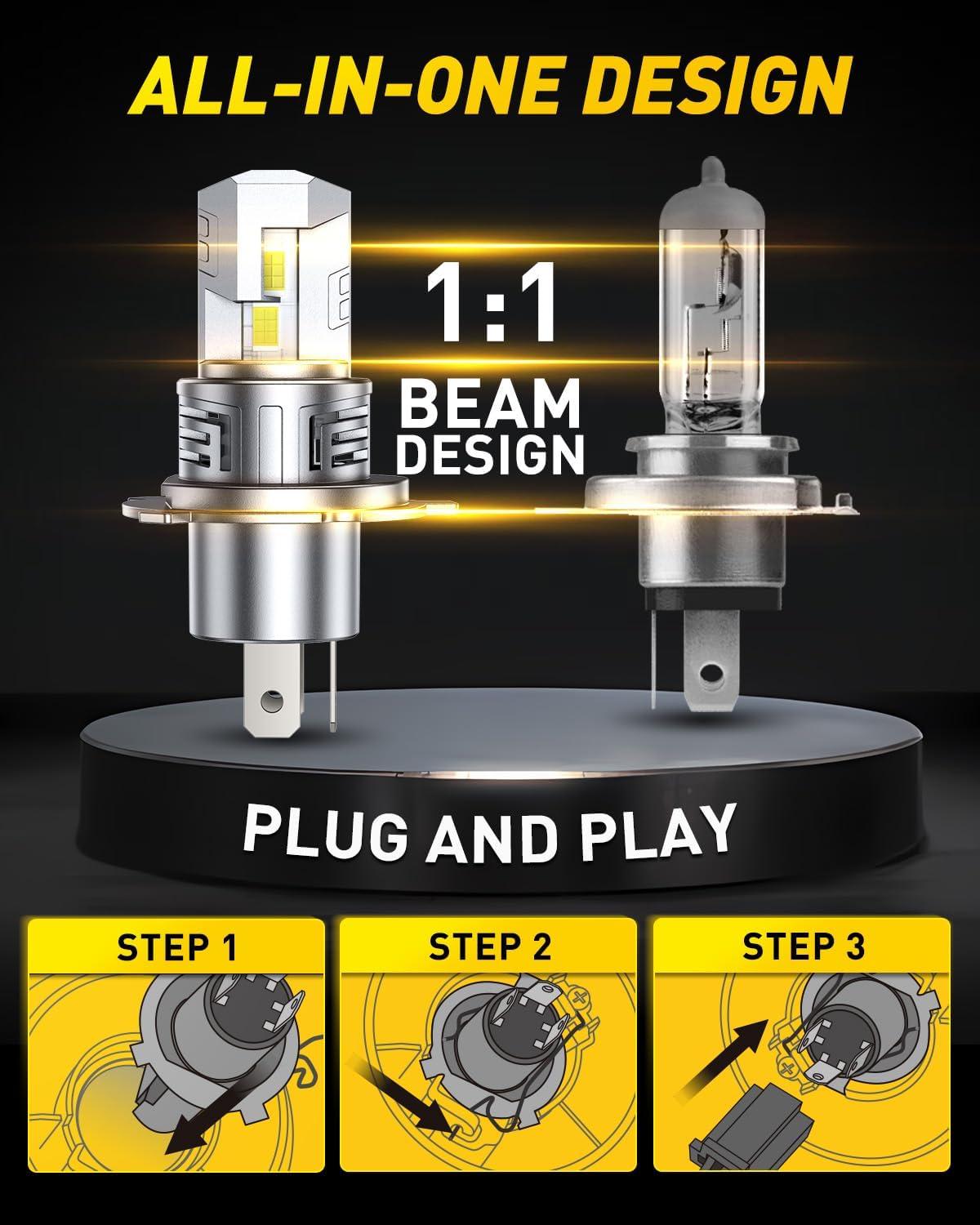 【Engineered for Effortless Installation】 Maintaining precise factory specifications, this H4 bulb features direct-fit design that eliminates installation complexity while ensuring perfect optical alignment