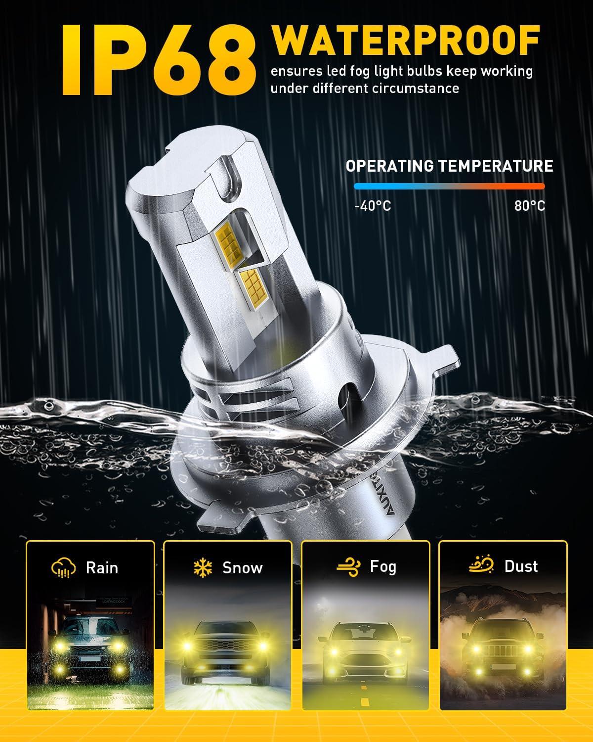 Superior All-Weather Visibility with 3000K Golden Light: Features a specialized 3000K color temperature for exceptional light penetration. Cut through rain, fog, and snow with reduced glare, providing a safer driving experience in adverse conditions.