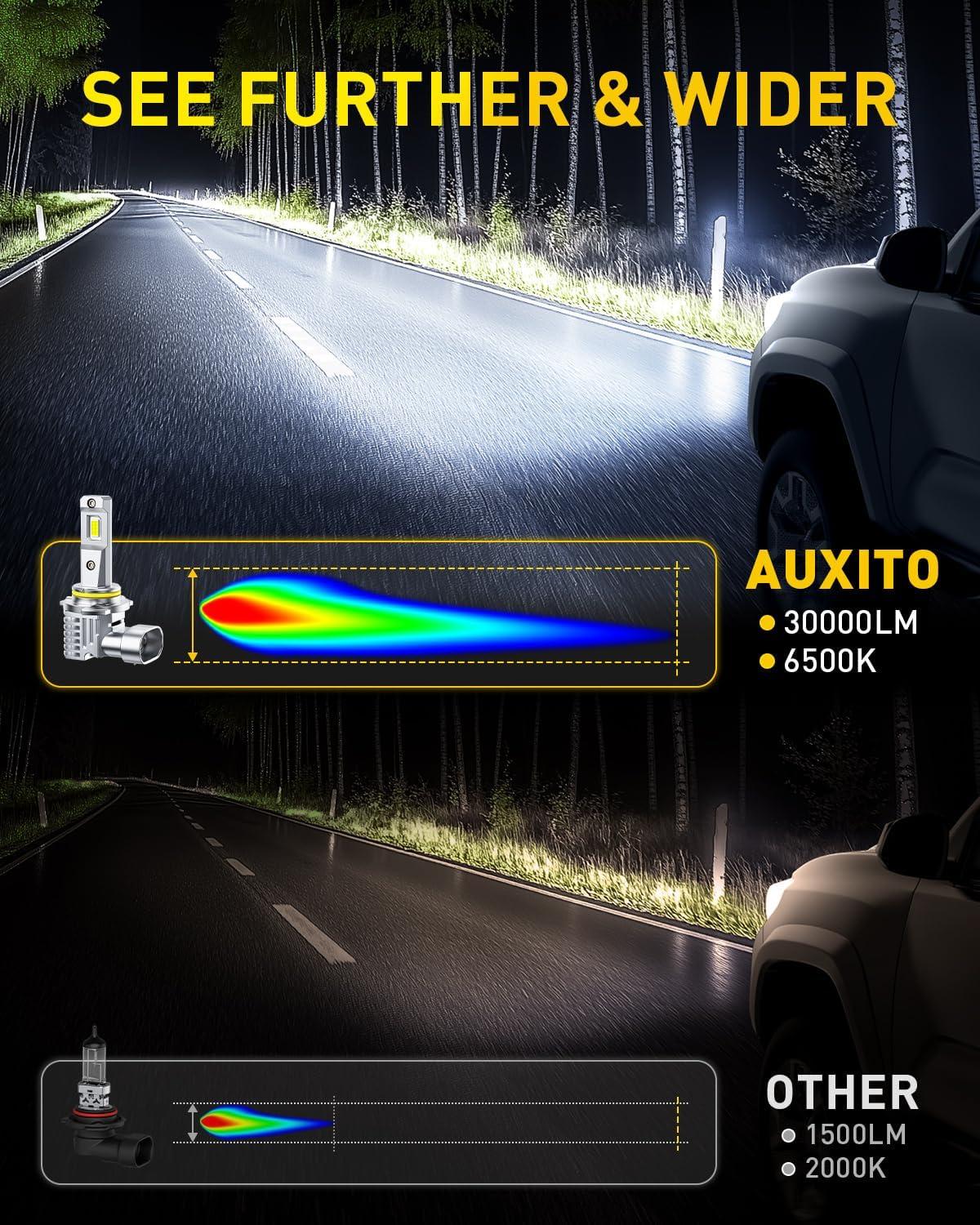 【1000% Enhanced Luminosity Output】 AUXITO H7 delivers six times the brightness of standard halogen bulbs through advanced CSP chips, providing exceptional road illumination and extended visual range for nighttime driving