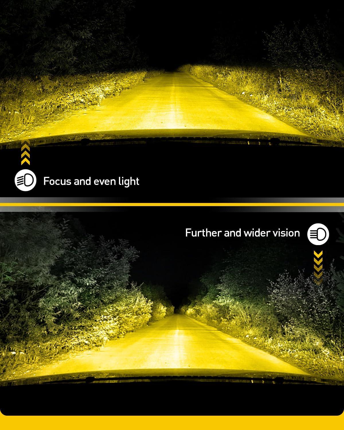 AUXITO H7 Bulb, 1000% Brighter, 1:1 Mini Size No Adapter Needed, 5 Min Quick Install, No Flicker, 99% Compatibility, Pack of 2(H11B-Yellow)