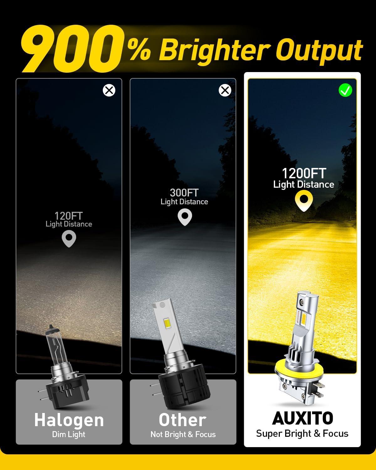 【1000% Enhanced Luminosity Output】 AUXITO H7 delivers six times the brightness of standard halogen bulbs through advanced CSP chips, providing exceptional road illumination and extended visual range for nighttime driving