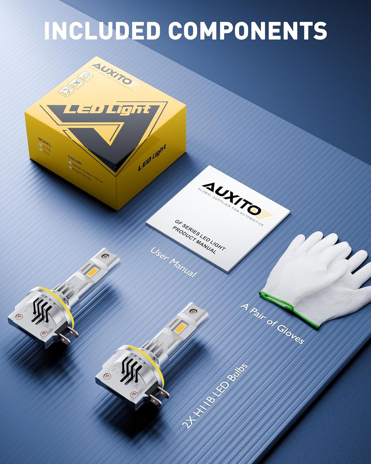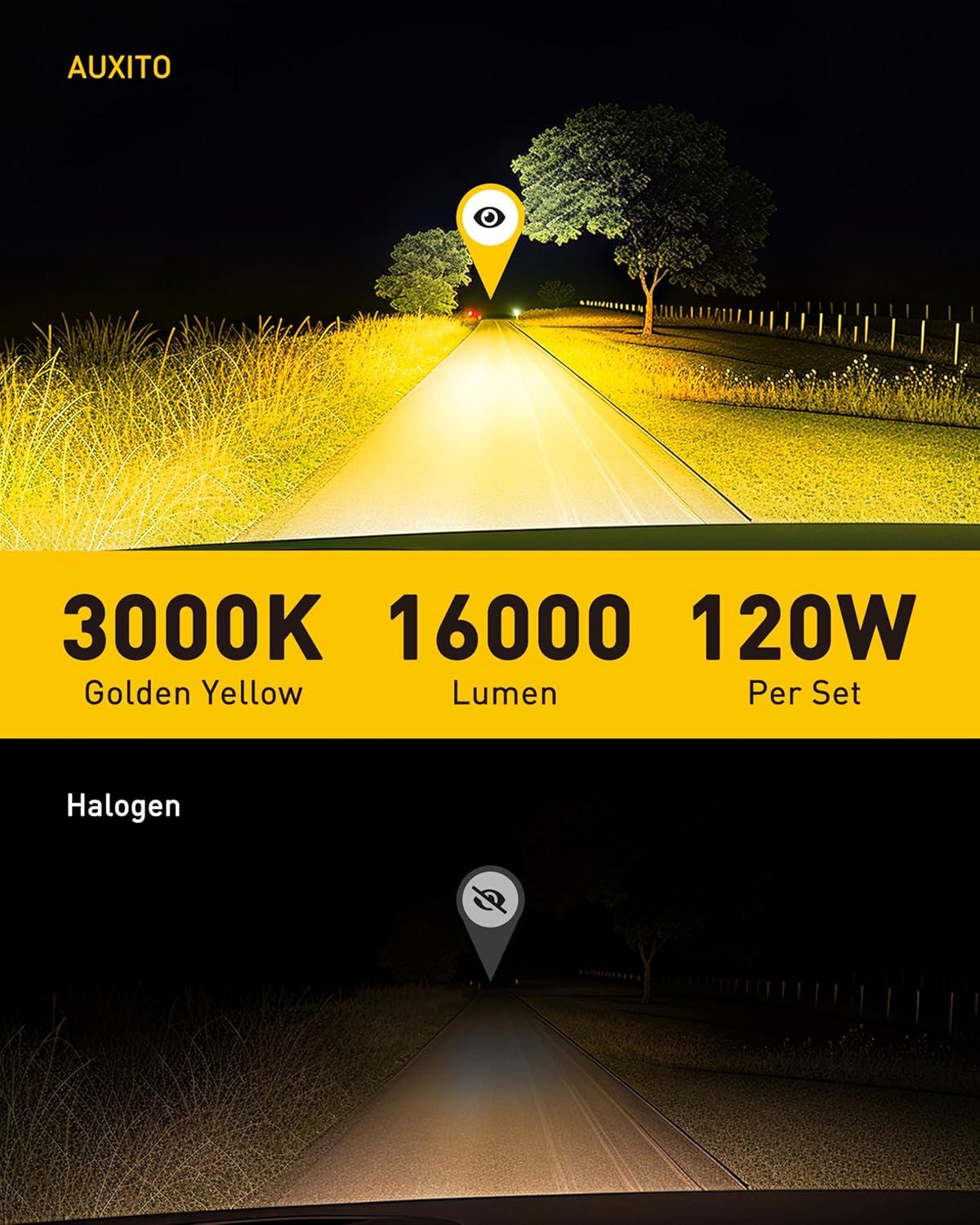 AUXITO H7 Bulb – 1000% Brighter 6500K White Illumination, Factory Halogen Size Match, Simple Plug and Play, 99% Vehicle Compatible, Pack of 2(H11B-Yellow)