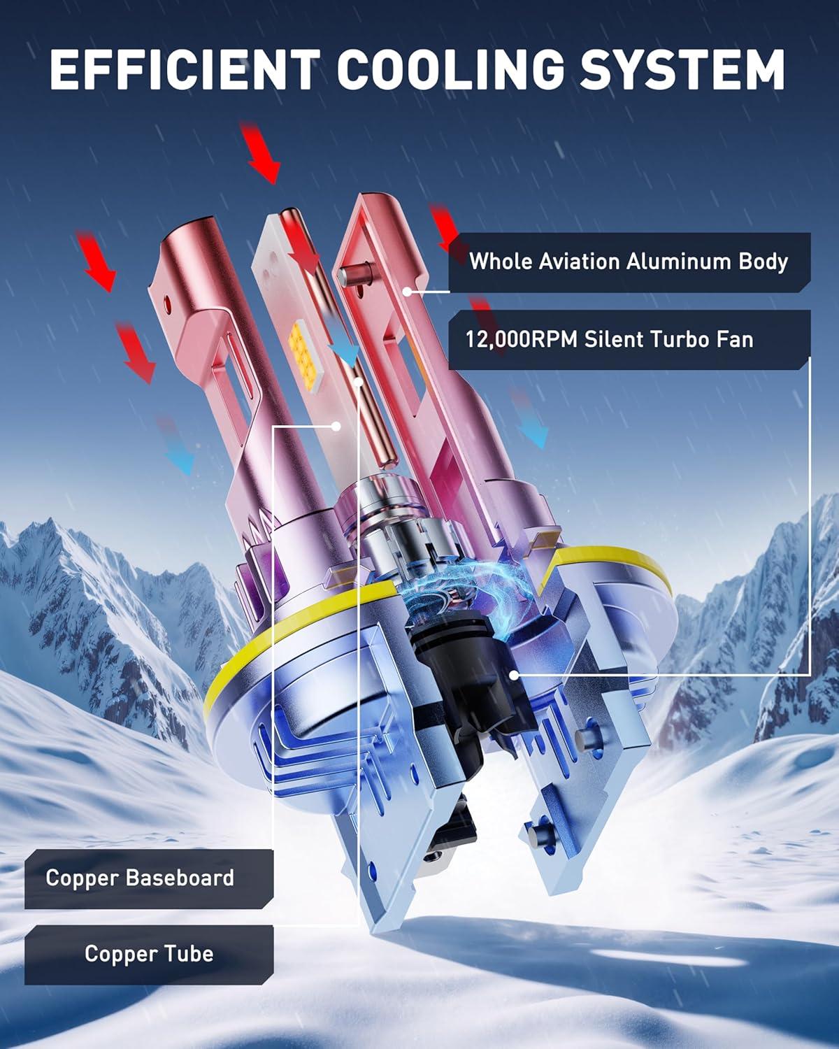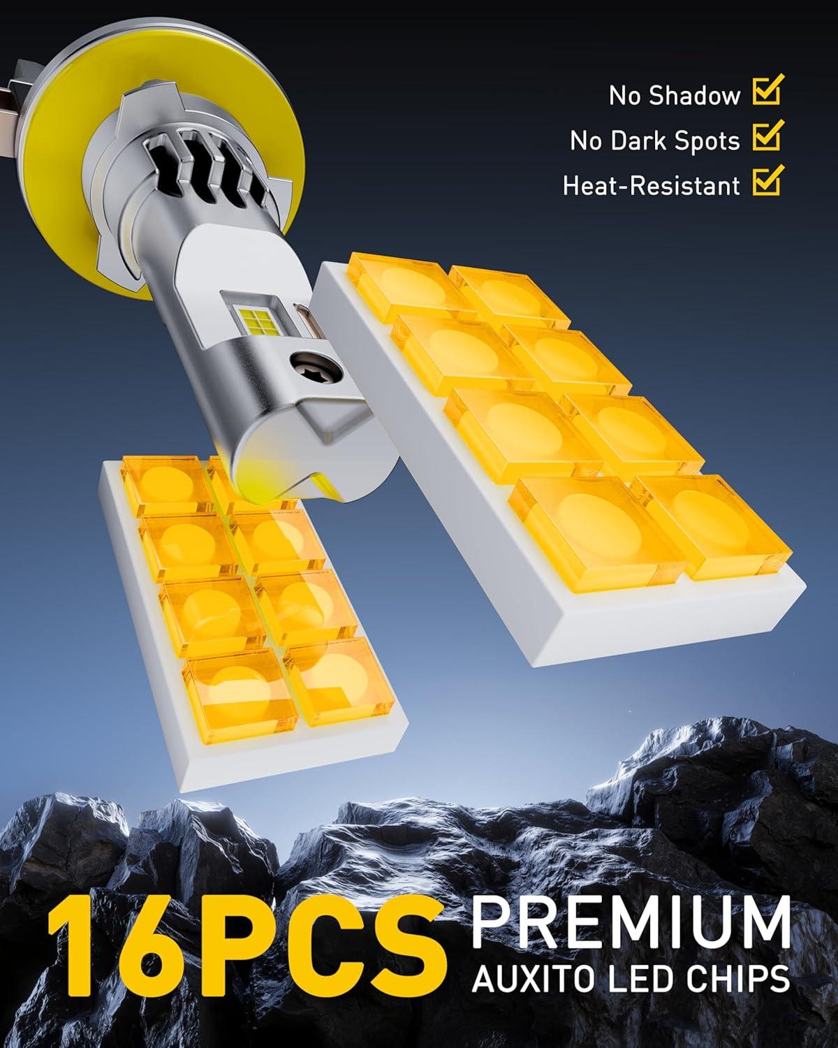 [Advanced Heat Management System]Designed with cutting-edge cooling technology and a copper core structure, the AUXITO H7 bulb effectively dissipates heat, ensuring uninterrupted performance over its 60,000-hour lifespan