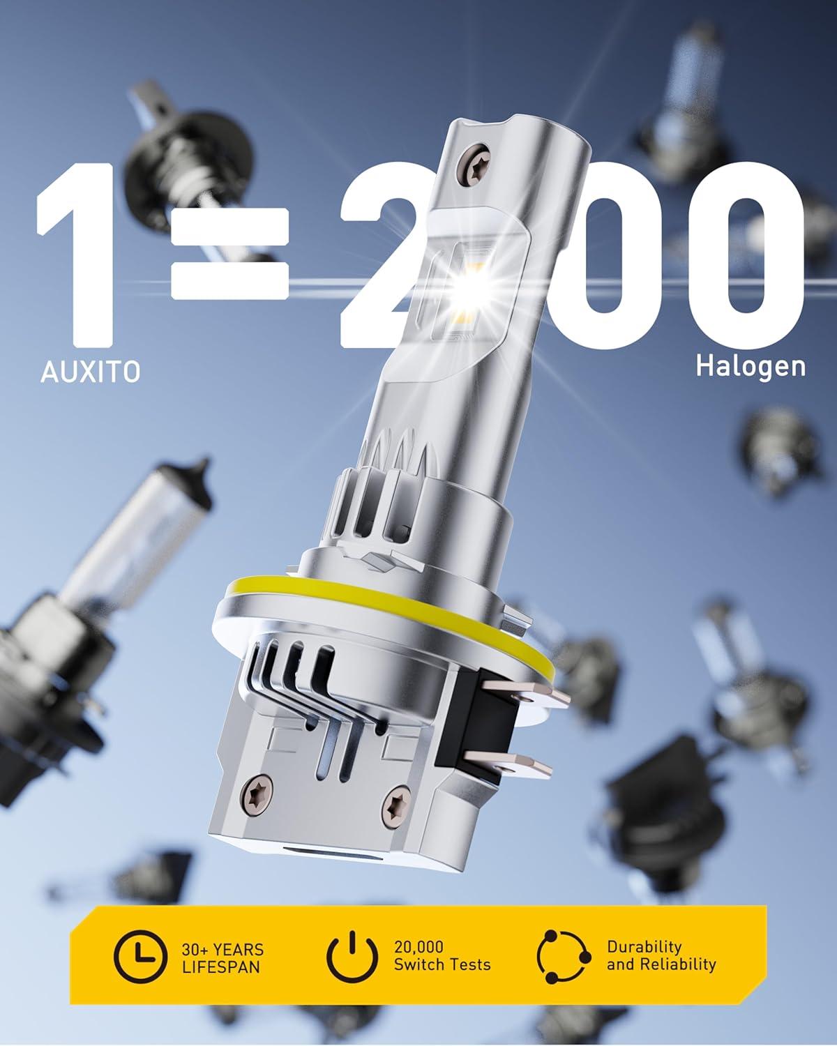AUXITO H7 Bulb – 1000% Brighter 6500K White Illumination, Factory Halogen Size Match, Simple Plug and Play, 99% Vehicle Compatible, Pack of 2(9003/H4)
