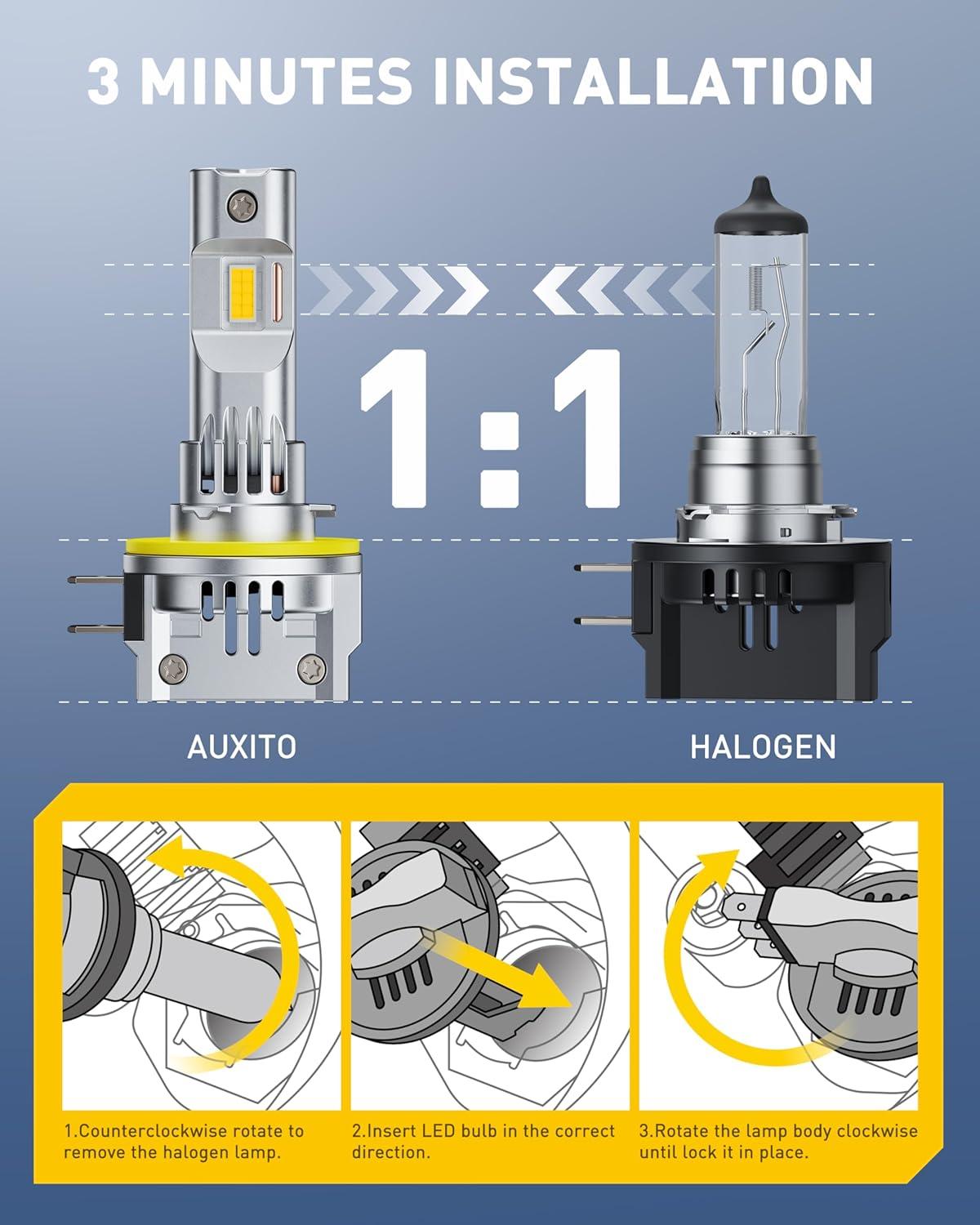 [Plug-and-Play Installation for Convenience] With an integrated, direct-fit design matching halogen bulb dimensions, the AUXITO H7 bulb allows for easy installation in minutes, requiring no adapters or additional tools, making it accessible even for beginners
