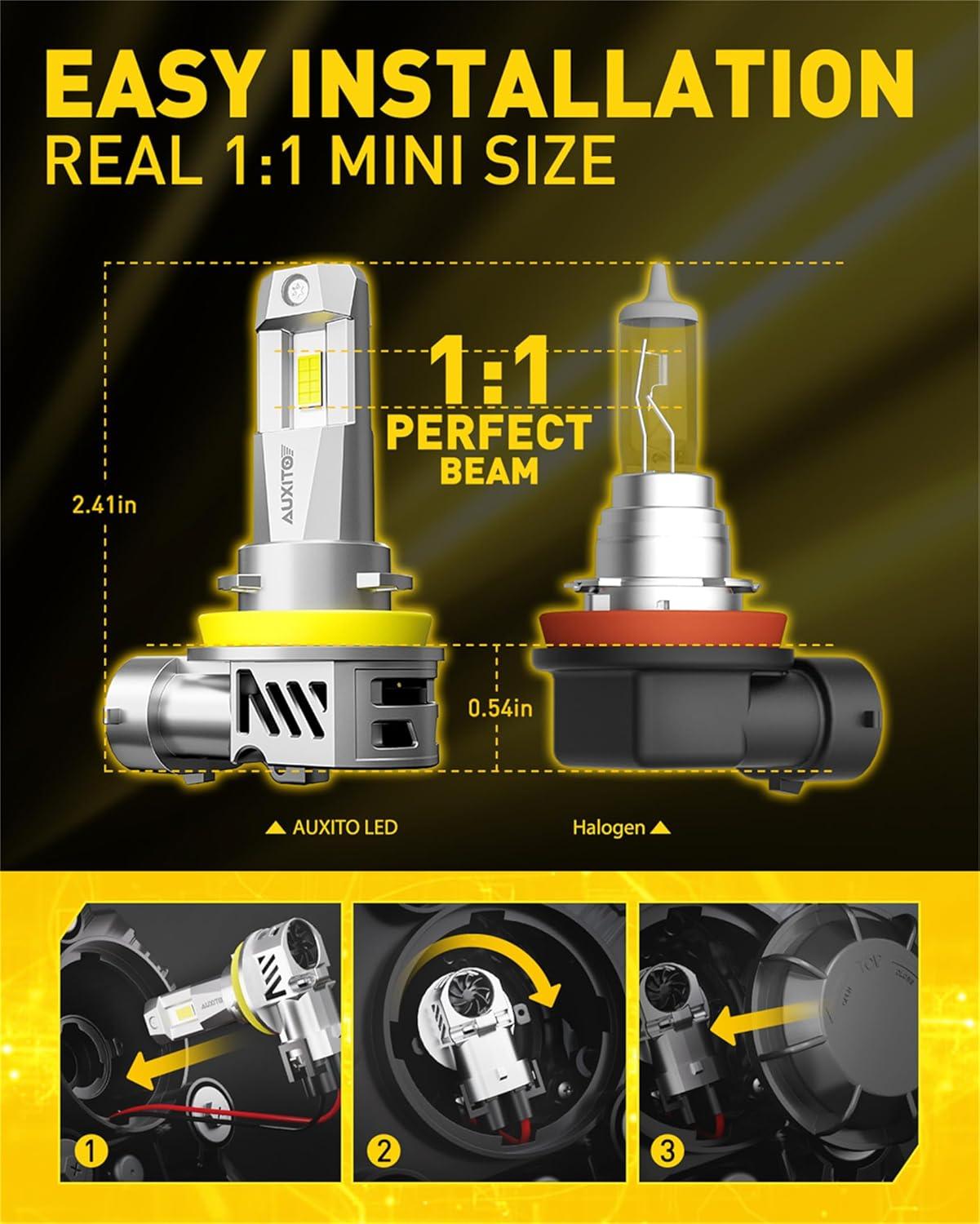 AUXITO H7 Bulb, 600% Brighter, 1:1 Mini Size No Adapter Needed, 5 Min Quick Install, No Flicker, 99% Compatibility, Pack of 2(H11B)
