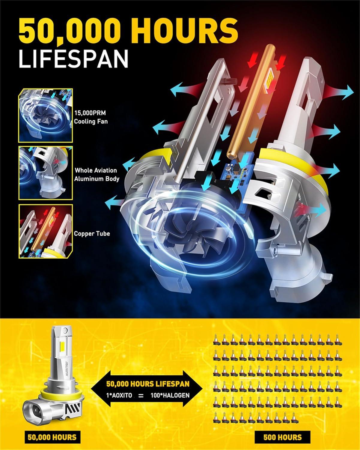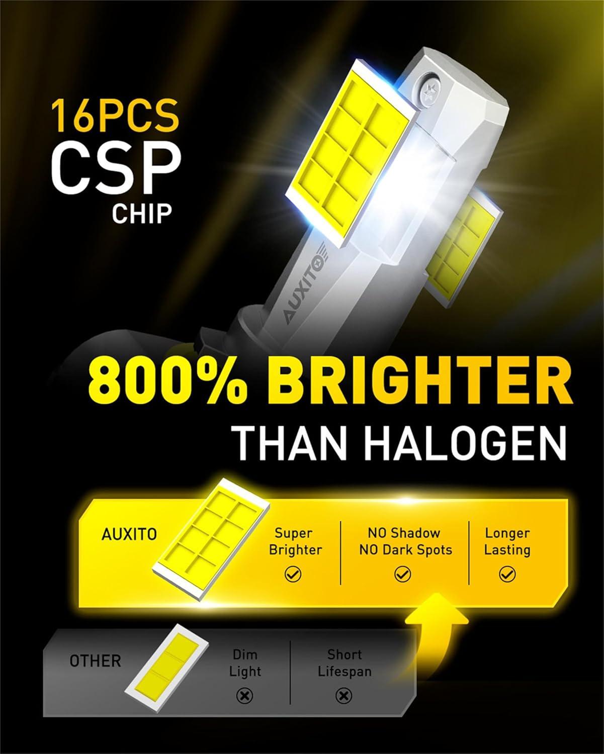 【600% Enhanced Luminosity Output】 AUXITO H7 delivers six times the brightness of standard halogen bulbs through advanced CSP chips, providing exceptional road illumination and extended visual range for nighttime driving