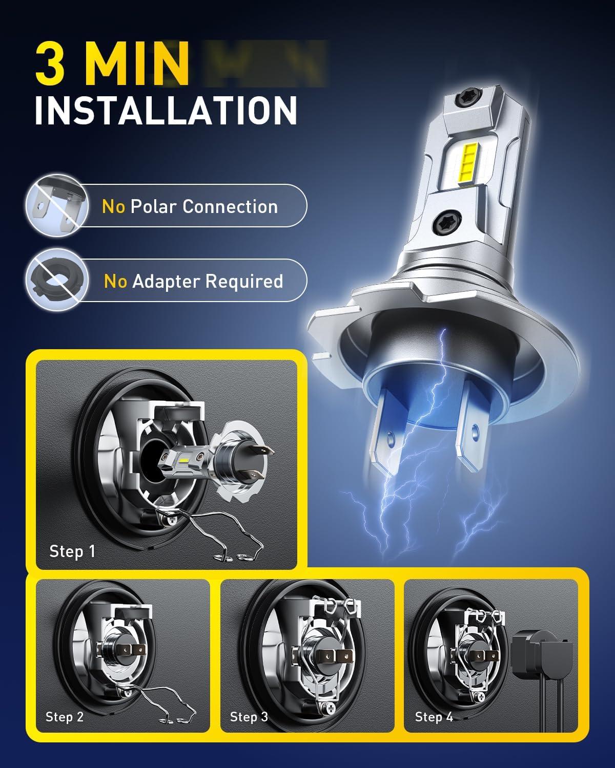 【Plug & Play】 The AUXITO H7 bulb features true 1:1 dimensional replication of factory specifications with non-polarity construction,enabling direct housing integration without adapters or modifications.