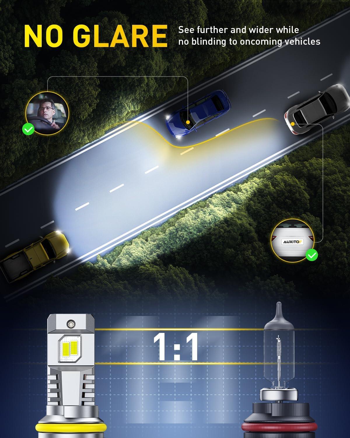AUXITO H7 Bulb – 600% Brighter Output 6500K Bright White, Simple Plug & Play, 60000Hr+ Long Lifespan, Pack of 2(9005+9006)