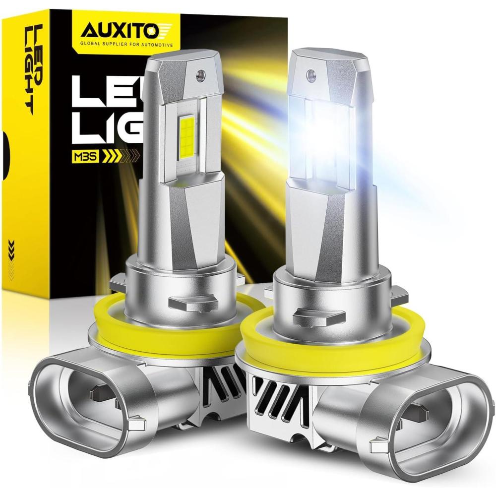 AUXITO H7 Bulb - 600% Brighter Output 6500K Bright White, Simple Plug & Play, 60000Hr+ Long Lifespan, Pack of 2(H11/H8/H9)