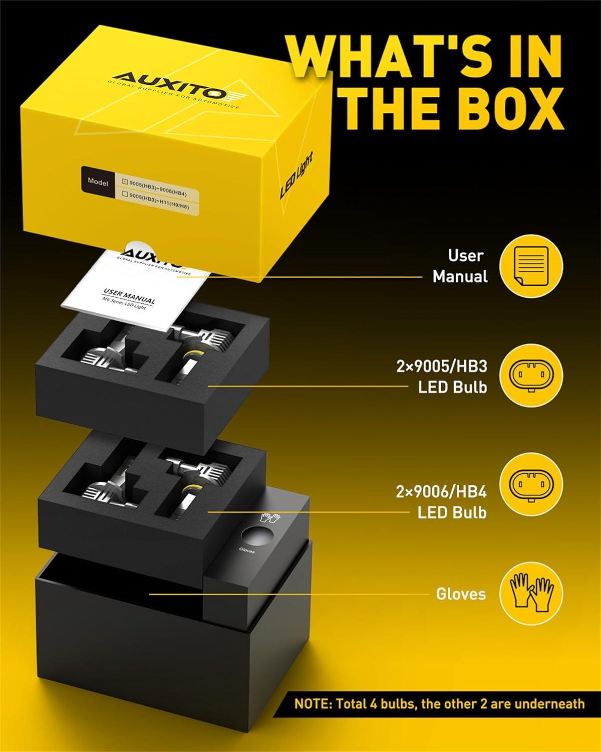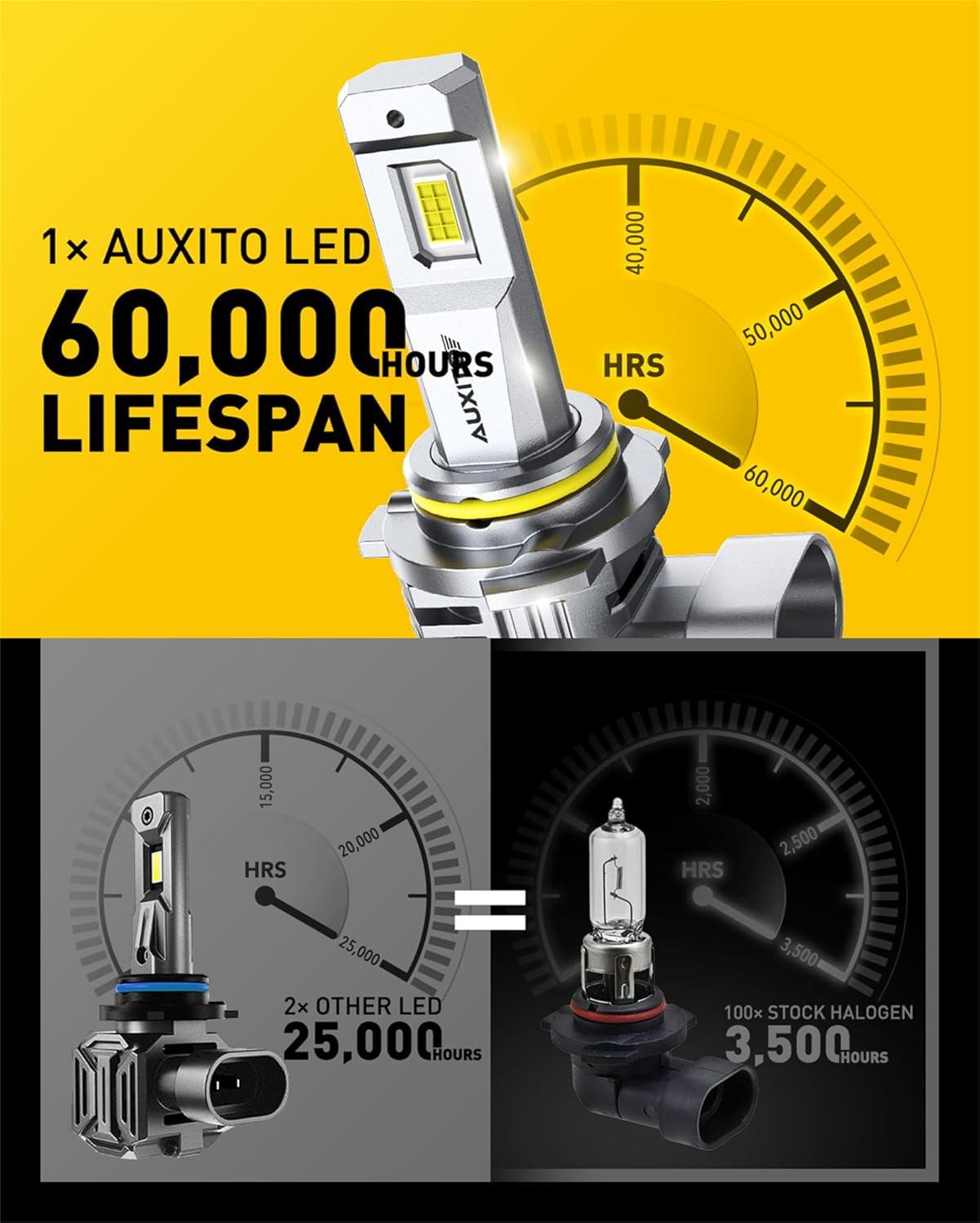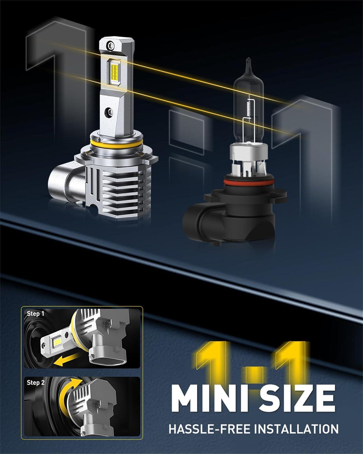 AUXITO 9006/HB4 Bulbs, 30000LM Brightness 6500K White, 1:1 Mini Size, Non-Polarity Plug and Play, HB4 Halogen Fog Lamp Replacement, Canbus Ready, Pack of 2(H1)