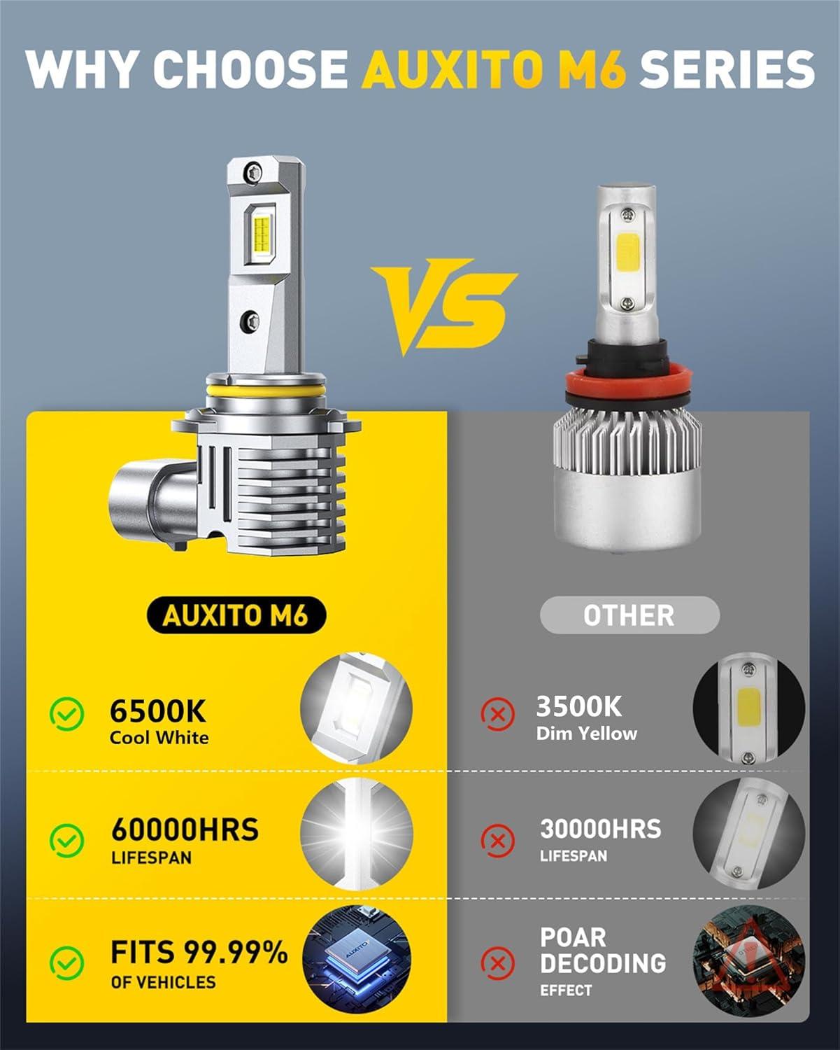 AUXITO H7 Fog Bulb, 6500K White 400% Brighter, Canbus Ready with Fan, Pack of 2(H8/H11/H16)