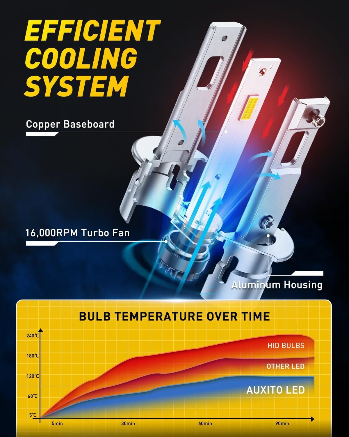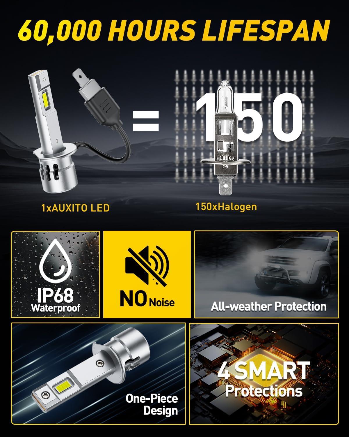 500% Brighter Features 8 CSP chips and 6500K cool white light, delivering 5x the brightness of halogen bulbs for enhanced nighttime visibility and safety