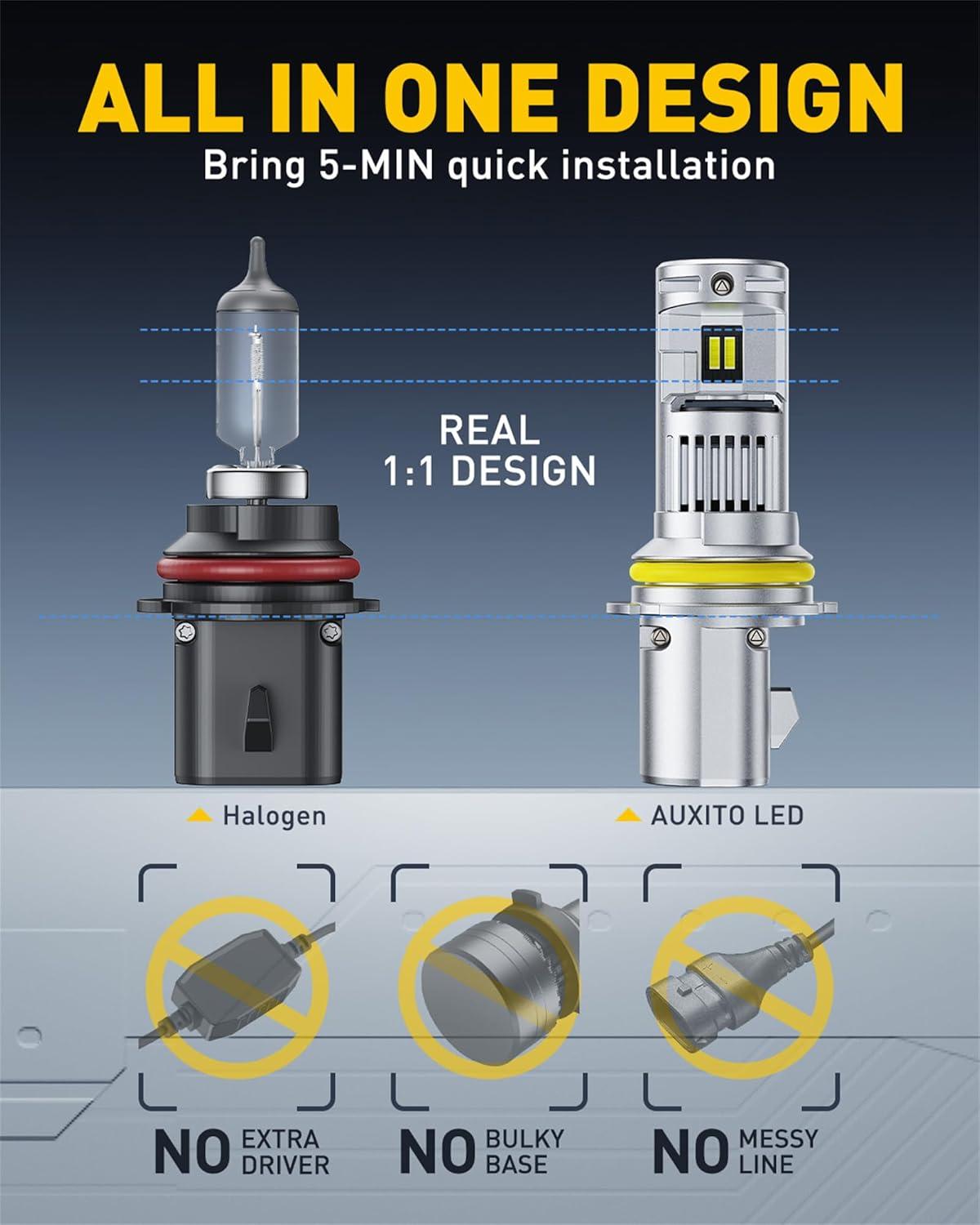 Be the first to review “AUXITO H7 LED Bulb, 500% Brighter Ultra-Bright 6500K White, 1:1 Mini Size No Adapter Required, Plug N Play, Long Lifespan, No Flicker, 99% Compatibility, 2PCS(9004)”