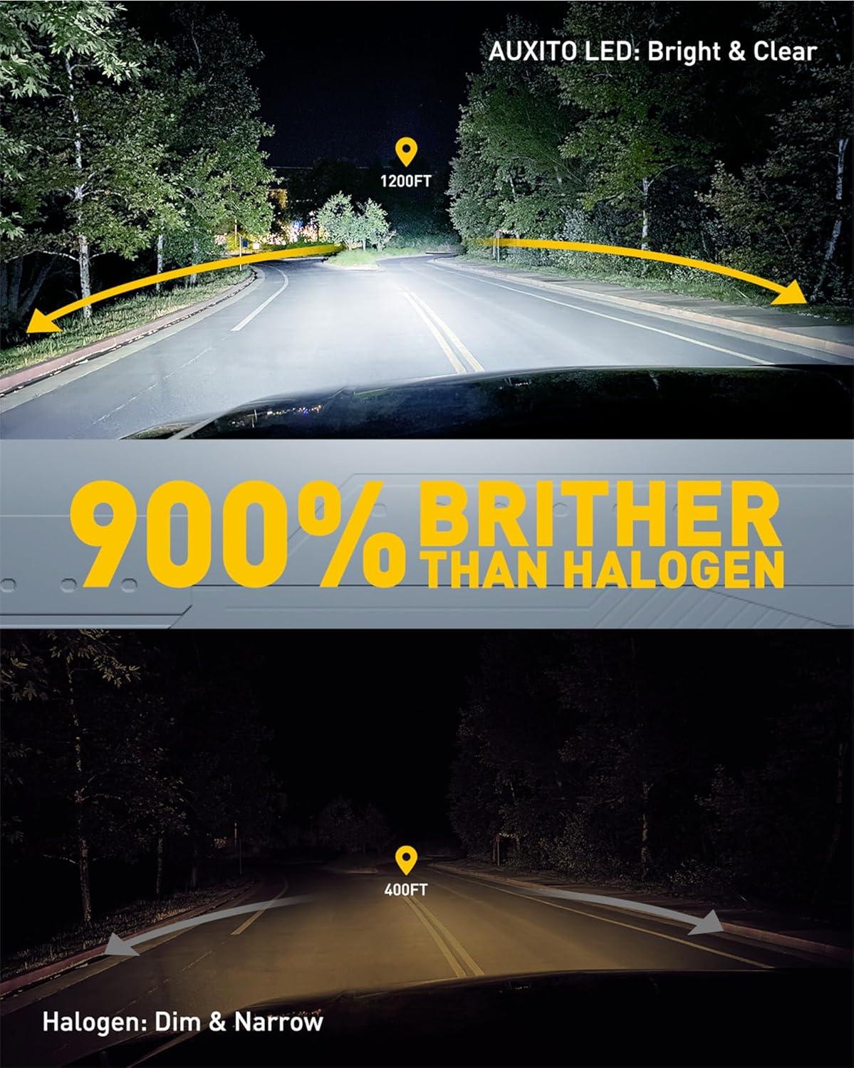 【500% Brightness Improved】AUXITO H7 are equipped with latest CSP chips, provide 5 time brighter than stock halogne bulbs. This ensures clearer and farther vision on the road, significantly improving nighttime visibility