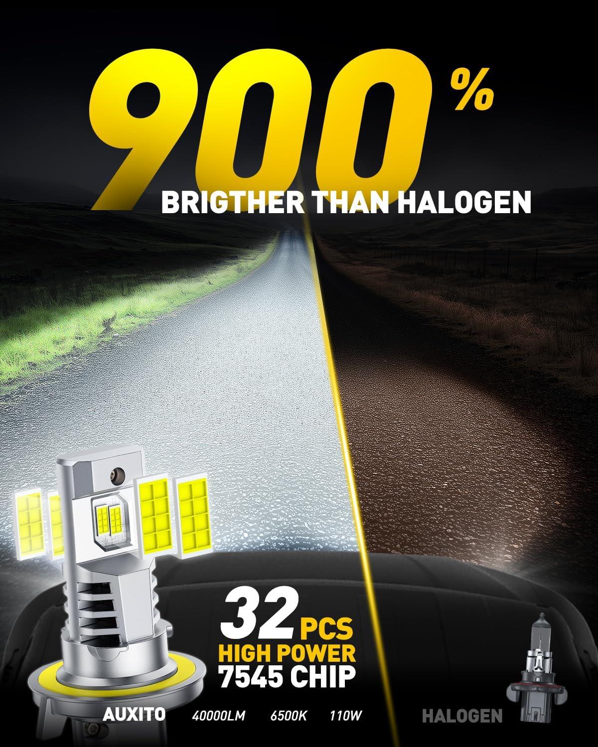 【500% Brightness Improved】AUXITO H7 are equipped with latest CSP chips, provide 5 time brighter than stock halogne bulbs. This ensures clearer and farther vision on the road, significantly improving nighttime visibility