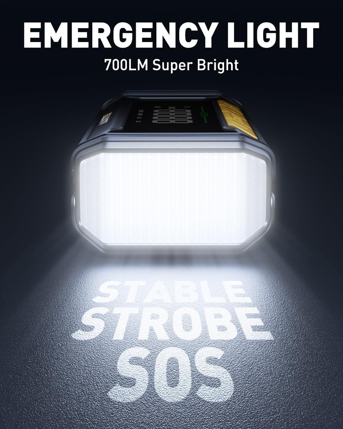 AUXITO Jump Starter: 6000A Car Portable-Battery Jumper Box with 4000LM LED Outdoor Camping Light and Power Bank Function, Up to 10.5L Gas and 10L Diesel Engines, USB Ports and Jumper Cable Included(7000A)