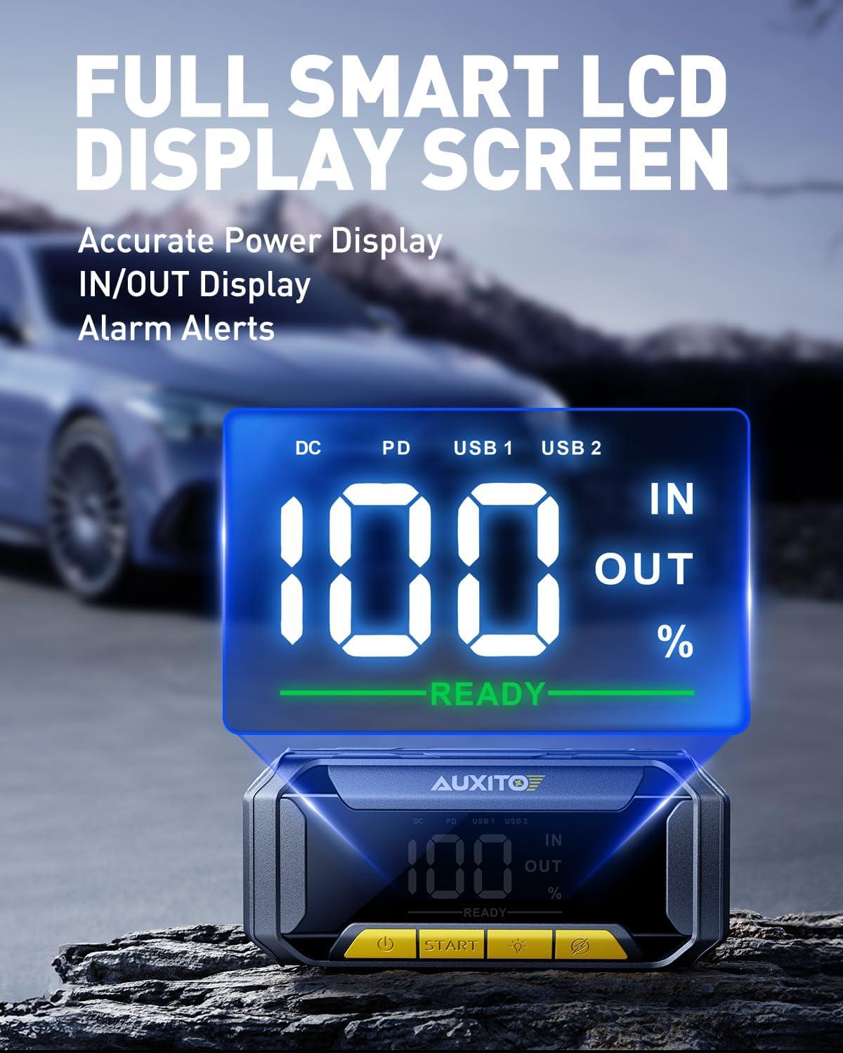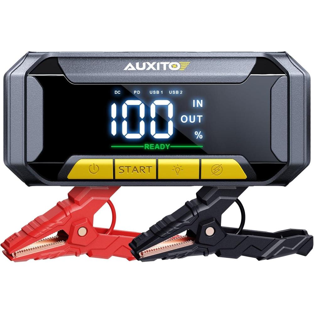 Be the first to review “AUXITO Jump Starter: 6000A Car Portable-Battery Jumper Box with 4000LM LED Outdoor Camping Light and Power Bank Function, Up to 10.5L Gas and 10L Diesel Engines, USB Ports and Jumper Cable Included(8000A)”