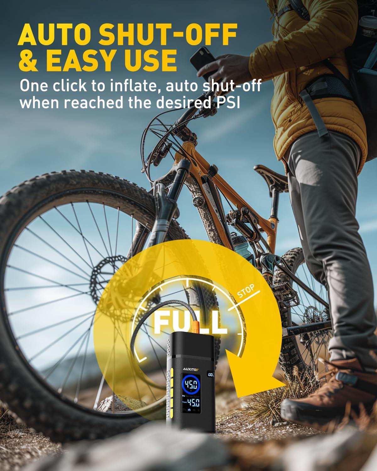 Super Easy to Use: Using AUXITO tire inflator with digital pressure gauge is a breeze, just plug in the air hose, attach it to the tire, set the desired air pressure, and click to start. The inflator will automatically fills to the desired PSI level and shuts off. Only 4 simple steps, your tire is on its way to being roadworthy again.
